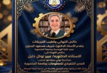 الجميله المتألقه ا.م.د .عبير توكل مديرا تنفيذا للمعلومات بجامعة المنصورة